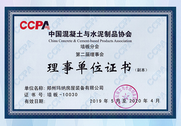 ①中國混凝土與水泥制品協會墻板分會第二界理事會理事單位證書