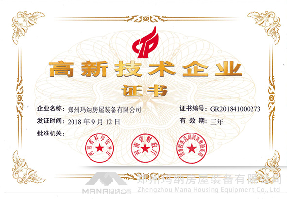 2019年3月11日,瑪納公司獲得了高新技術企業(yè)證書。
