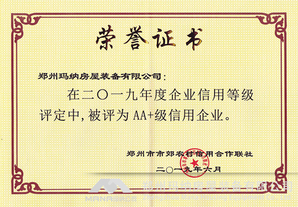 ③瑪納公司榮獲-鄭州市市郊農村信用合作聯社頒發(fā)的榮譽證書。