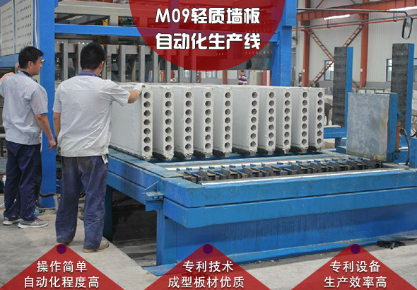 為滿足陶粒隔墻板的大規(guī)模、自動化、高品質生產,瑪納公司現推出新型M09陶粒隔墻板生產線。該線年產能為50萬平法米,以成組立模成型技術和大抽拔液壓抽芯機技術為核心,具有成型精度高、周轉效率快、占地面積小等優(yōu)勢。