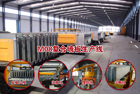瑪納M08復(fù)合墻板設(shè)備生產(chǎn)線價(jià)格從幾十萬到幾百萬不等,其主要設(shè)備組成是:集約式低能耗養(yǎng)護(hù)室(快速養(yǎng)護(hù)墻板構(gòu)件及低耗能技術(shù));第三代成組立模(不漏漿及大剛度技術(shù));立模回轉(zhuǎn)機(jī)(無線控制變頻行走及精確軌道對位);上抹面成型機(jī)(實(shí)現(xiàn)墻板上面成型);合板翻板機(jī)構(gòu)(完成合板及翻板技術(shù));壓力注料系統(tǒng)(可控注料);推板機(jī)構(gòu)(集合出板及隔板清理復(fù)合技術(shù))。