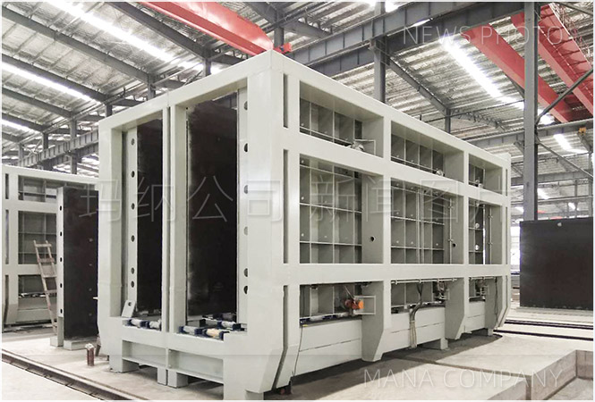 生產(chǎn)線采用成組立模成型技術(shù),采用模塊化控制,實(shí)現(xiàn)新型PC大墻板的工業(yè)化生產(chǎn),采用大立模加T型架的子母模技術(shù)極大的提高生產(chǎn)效率。采用六面模具成型,部品成型精度高,幾何尺寸準(zhǔn)確。