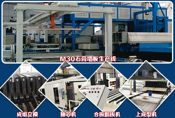設(shè)備組成主要有:成組立模成型主機(jī)、抽穿芯一體機(jī)、自動(dòng)布料機(jī)、出板接板機(jī)構(gòu)等,所生產(chǎn)的石膏墻板具有高精度,耐火性和隔音性。