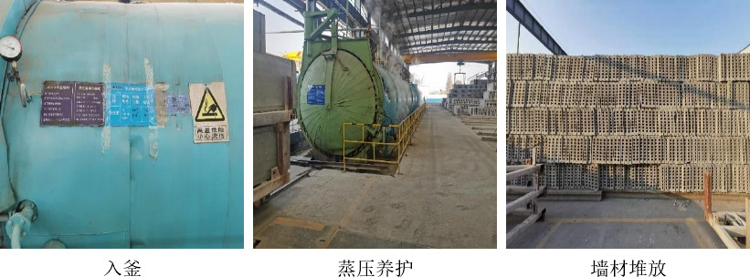 之后進(jìn)行抽芯處理,經(jīng)過(guò)表面質(zhì)量檢測(cè)和修復(fù)后,開(kāi)始進(jìn)行蒸壓養(yǎng)護(hù)處理,蒸壓養(yǎng)護(hù)過(guò)程分為升壓、恒壓、降壓三個(gè)過(guò)程:升壓階段(15min 0.10MPa;30min 0.25MPa;45min 0.35MPa;1h 0.50MPa)、恒壓階段(2h、0.5±0.05MPa)、降壓階段(15min 0.40MPa;30min 0.30MPa;45min 0.20MPa;1h 0.15MPa;1h15min 0.10MPa;1h30min 0MPa)、降溫冷卻 30min。