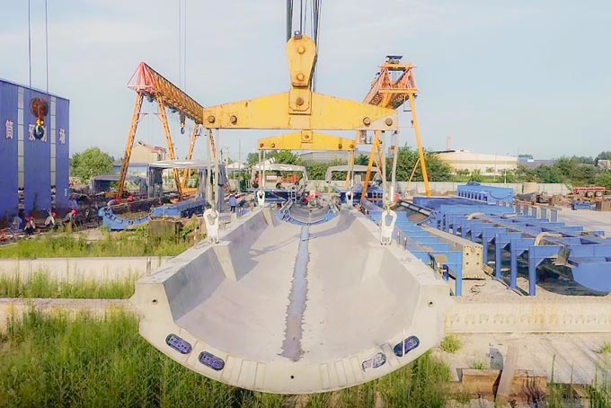 1)混塔管片二分體立式生產(chǎn)工藝具有單塊構(gòu)件體積大、構(gòu)件尺寸偏差大和構(gòu)件底部容易出現(xiàn)因混凝土漏振而疏松的質(zhì)量問題,同時具有生產(chǎn)空間受限、生產(chǎn)效率低和運輸不便等缺點。