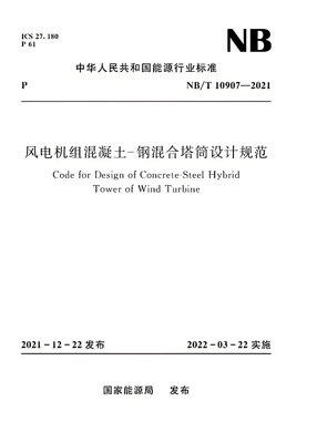 NB/T 10907-2021 《風(fēng)電機(jī)組混凝土塔筒設(shè)計(jì)規(guī)范》 行標(biāo)
