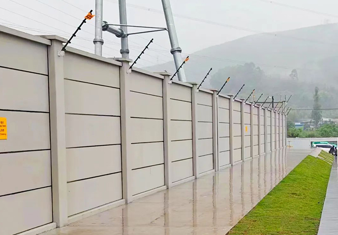 裝配式圍墻安裝便捷,整體安裝接縫高度一致,墻板無色差,抗風柱、墻板、壓頂、柱帽等配件一次性安裝到位,勾縫飽滿美觀,施工人員平均每天可完成30米圍墻安裝,較常規(guī)建設方式縮短40%~50%。