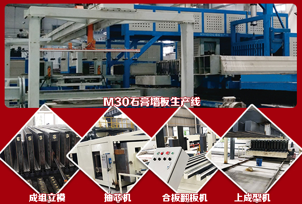 M30石膏墻板生產(chǎn)線:成組立模/抽芯機(jī)/合板翻板機(jī)/上成型機(jī)