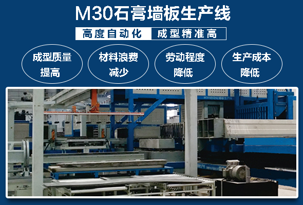 為實(shí)現(xiàn)石膏空心隔墻板自動化目的,該石膏空心隔墻板機(jī)M30石膏墻板生產(chǎn)線包括,自動圍擋刮面機(jī)、上抹面成型定位機(jī)構(gòu)、合板翻板機(jī)構(gòu)、第三代液壓抽芯機(jī)、第三代成組立模等。該生產(chǎn)線生產(chǎn)的石膏空心隔墻板具有成型"精準(zhǔn)高、輕質(zhì)高強(qiáng)、耐水、防火"等特性,從研發(fā)至今一直深受客戶的好評。