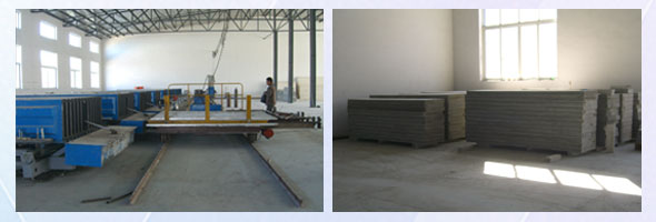 整個過程:配料→攪拌→置板→壓力輸送→澆注入模→養(yǎng)護→開!霭鍣C出板→循環(huán)