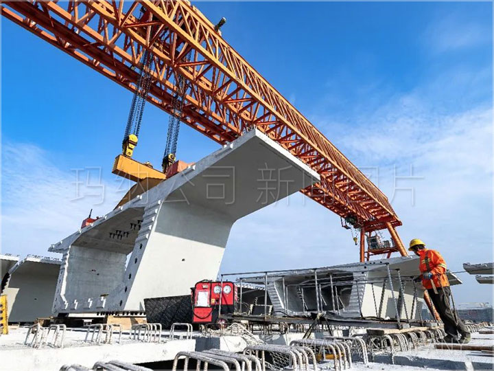 (6)智能張拉、壓漿。智能張拉系統(tǒng)包含預應力自動同步張拉設備及計算機控制系統(tǒng),可實現(xiàn)預應力張拉過程中張拉力和伸長量雙控;智能壓漿系統(tǒng)包含壓漿設備和控制系統(tǒng),可實現(xiàn)自動上料、稱重配料、高速制漿、低速儲漿等功能。